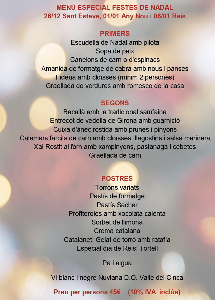 Menú especial día 26/12 St. Esteve
