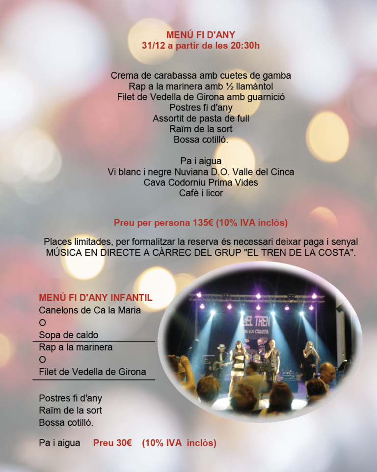 Menú especial cena de Fin de año con música en directo 31/12